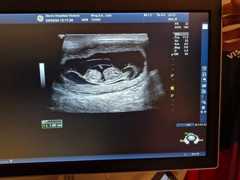 Yeah! Catoo is drachtig! Sowieso zijn er 3 pups gezien, heeeel misschien een 4de al verwachten we die niet.