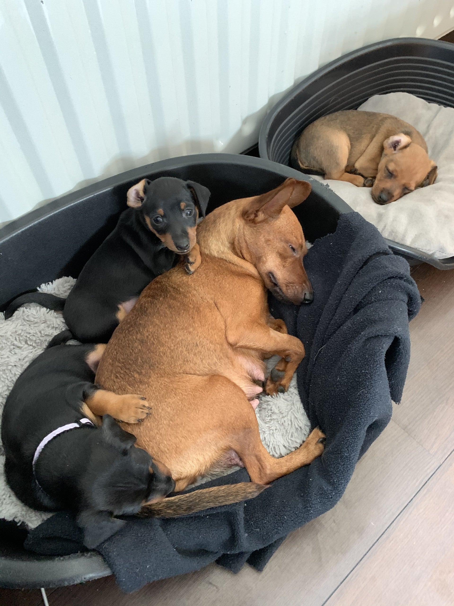 Moeder en de pups maken het heel goed en gaan nu lekker uitrusten en bijkomen van de bevalling. De namen van de pups zijn opgegeven aan de raad van beheer 🤗